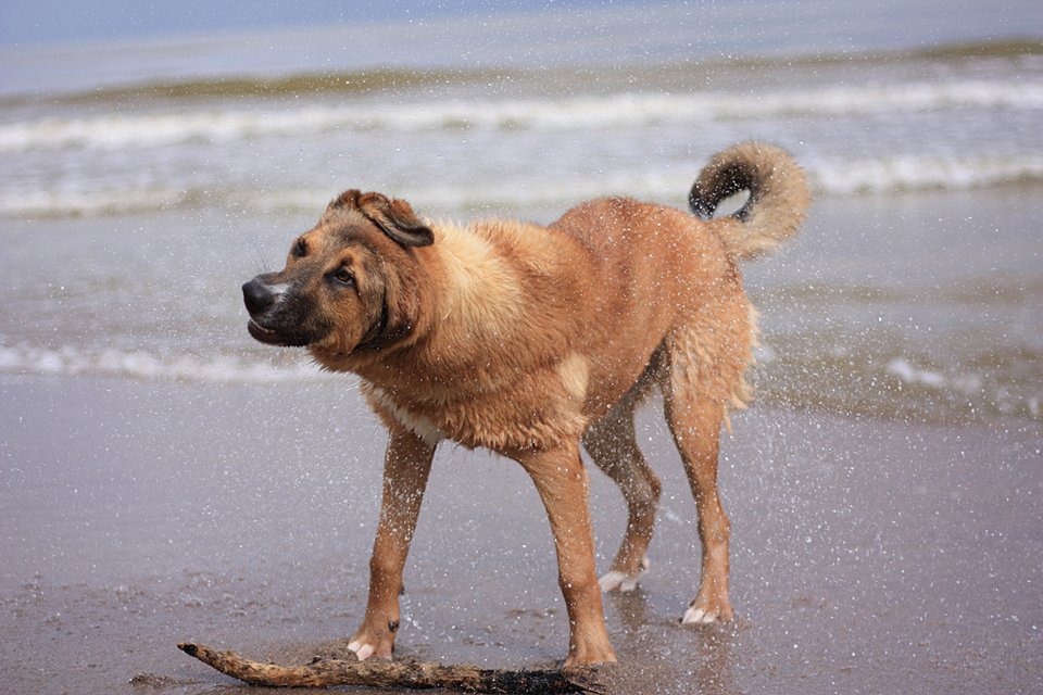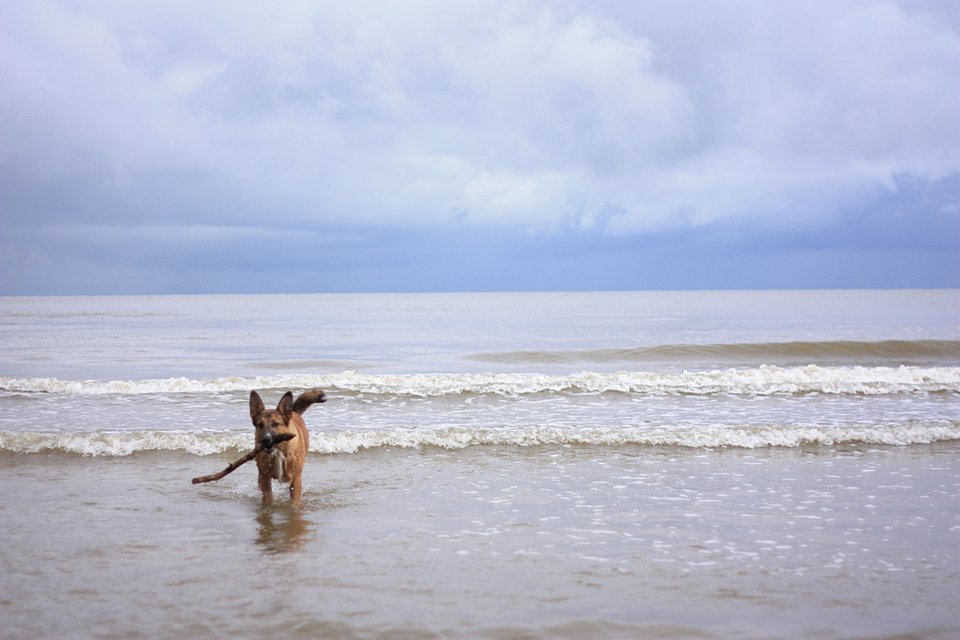 Vispār mēs esam ļoti priecīgi, ka esam Laru pieradinājuši pie jūras peldēm. Lara ir acīmredzami kļuvusi par jūras suni. No mirkļa, kad noejam lejā pie jūras, suns ieskrien ūdenī un ārdās pa to, cik vien ilgi iespējams.
